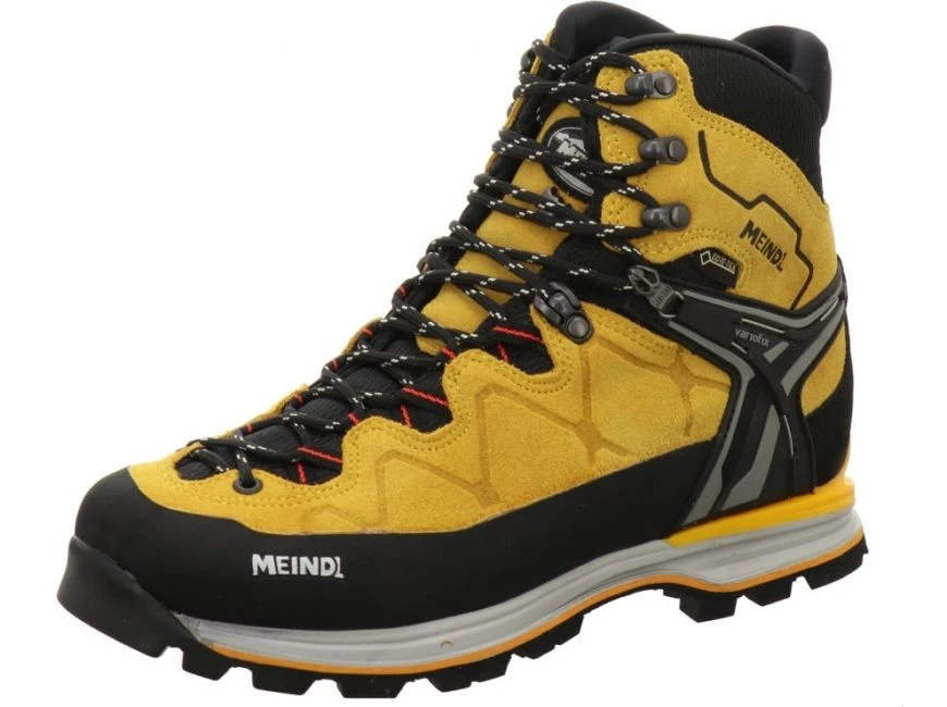 Meindl Bergwanderschuh mit der Möglichkeit zur Steigeisen-Montage (Kipphebel mit Frontkorb), erhöhter Schaft mit guter Seiten-Stabilität aus Bergvelourleder mit Mesh zur besseren Atmungs – Aktivität, GORE-TEX Klimafutter und AIR-AKTIVE Soft-Print drysole.