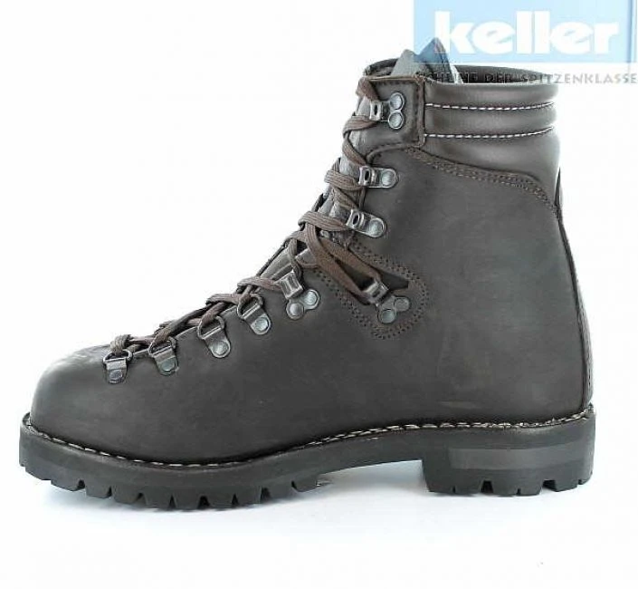 Zwiegenähter Bergschuh aus Sil-Juchtenleder (sehr wasserbeständig), Schaft aus einem Stück, Lederfutter, Leder- Brandsohle, VIBRAM° Montagna Sohle, echt zwiegenäht, universell einsetzbar ob Sommer oder Winter.